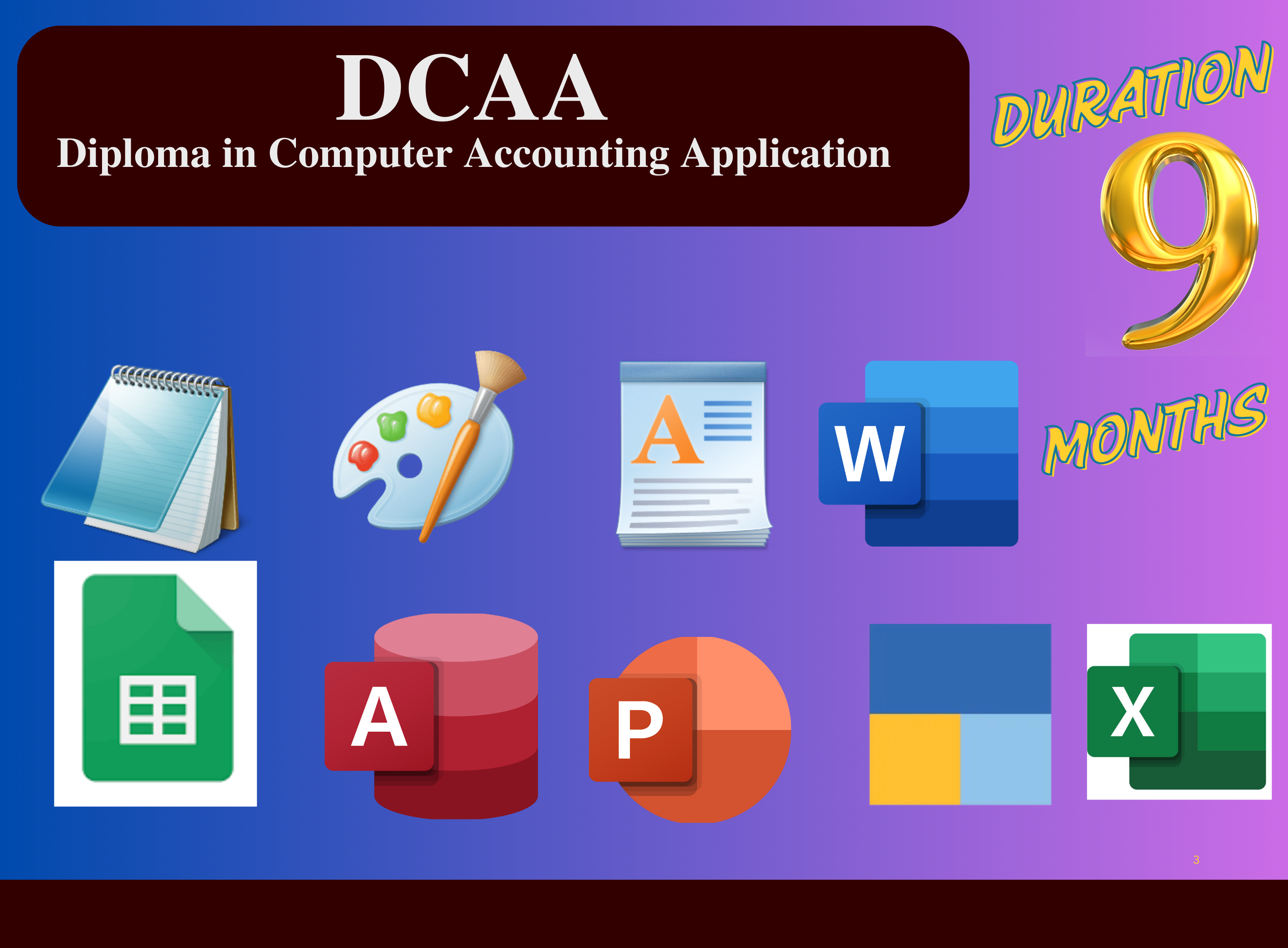 DCAA (Diploma in Computer Applications and Accounting) is a comprehensive course covering essential computer skills, accounting software, and financial management concepts. It prepares students for careers in accounting and IT roles.